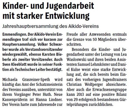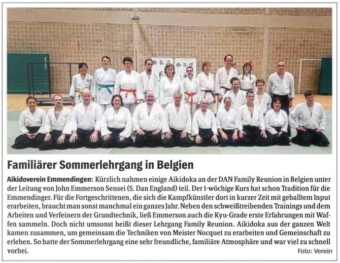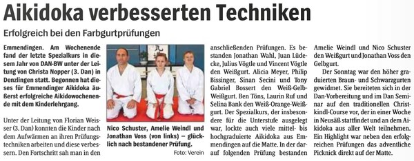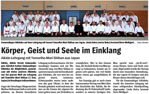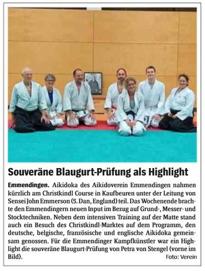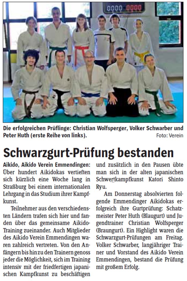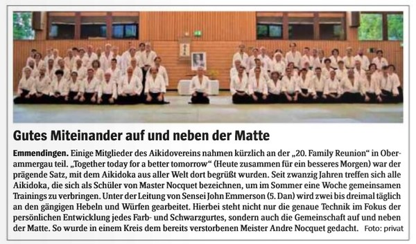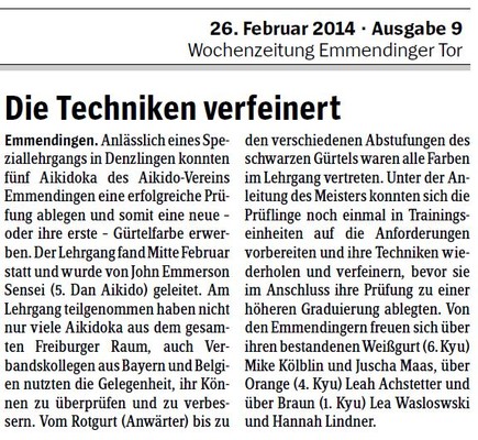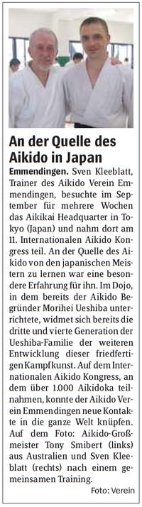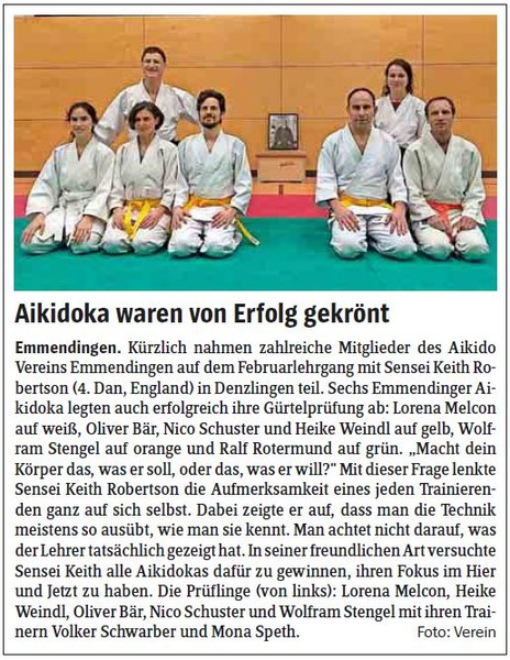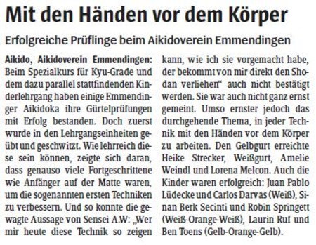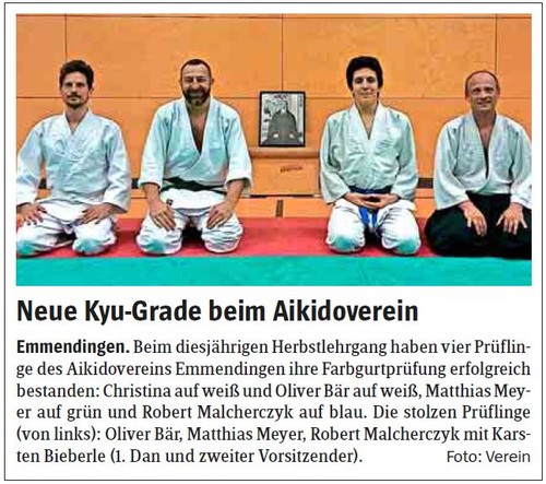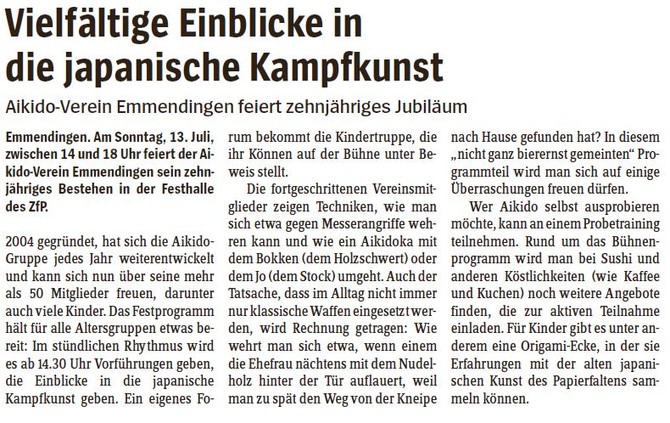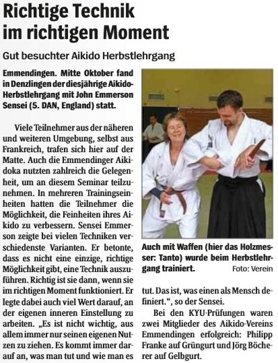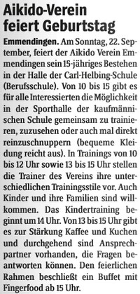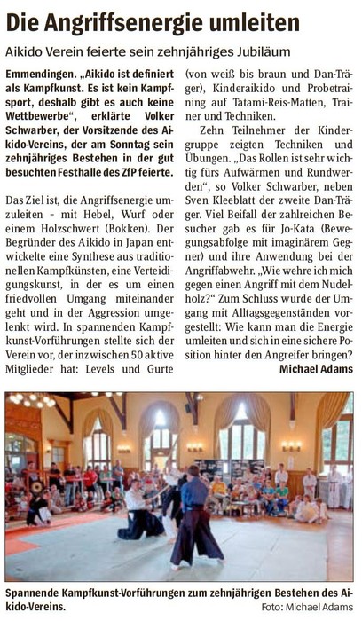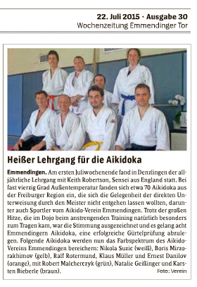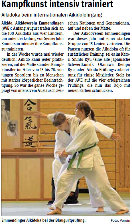 Artikel "Aikido - Eine Sportart stellt sich vor" im Emmendinger Tor