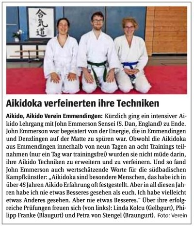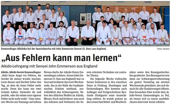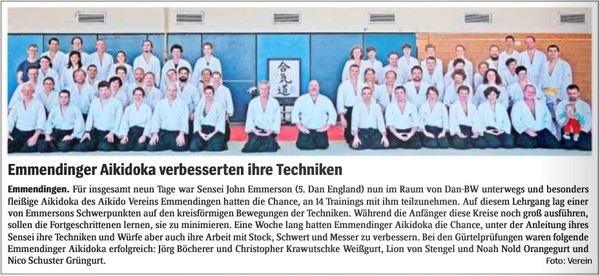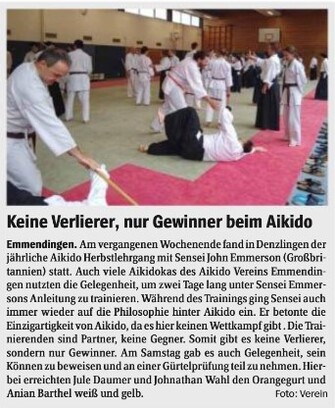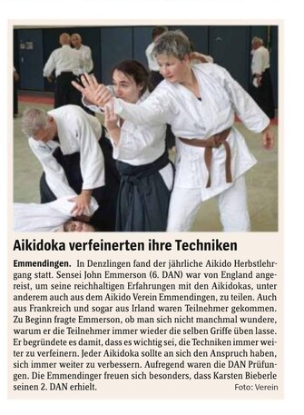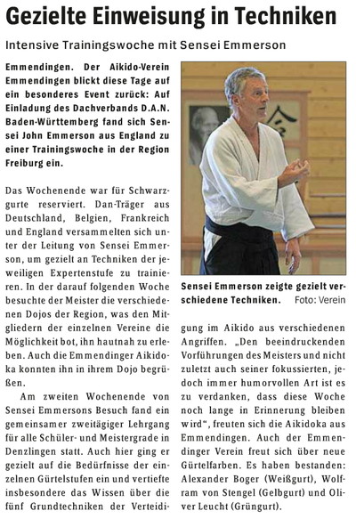 Über den Lehrgang mit Sensei Emmerson in Denzlingen.