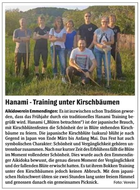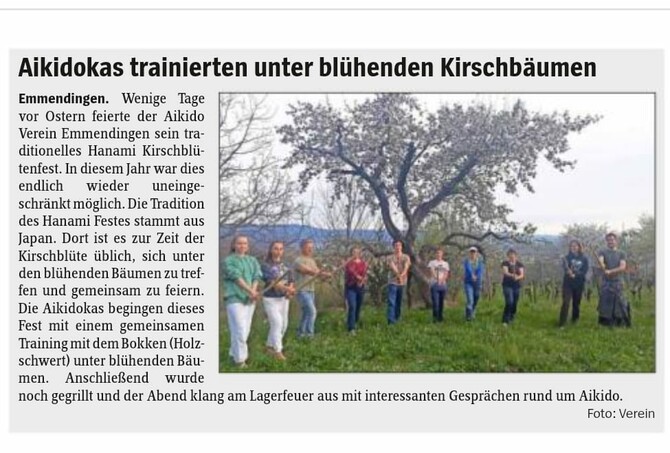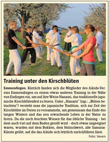 Aikidokas feiern japanisches Kirschblütenfest "Hanami" bei Endingen am Kaiserstuhl.